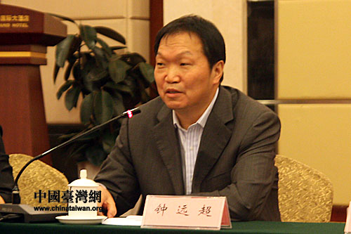 2011海峽兩岸記者“錦繡天府川南行”聯(lián)合采訪活動啟動儀式上,四川省臺辦副主任鐘遠超歡迎兩岸記者的到來,并介紹四川省情及對臺工作情況。(中國臺灣網(wǎng) 馬迪 攝)