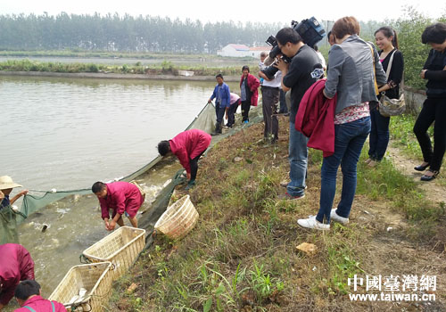 中國臺灣網6月6日六安消息 日前,臺灣TVBS《中國進行式》欄目攝制組一行來六安市霍邱縣馬店鄉溜山村,對該村魚鱉養殖年輕人朱治連進行了專題采訪。
