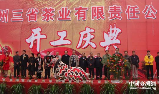 中國(guó)臺(tái)灣網(wǎng)1月4日遵義消息 日前,貴州三省茶葉有限責(zé)任公司在貴州省遵義縣(南白)食品工業(yè)園舉行隆重的開(kāi)工典禮,貴州省農(nóng)委主任劉福成、省臺(tái)辦主任王登齊等領(lǐng)導(dǎo)以及原“臺(tái)北市市長(zhǎng)”、貴州省農(nóng)業(yè)經(jīng)濟(jì)顧問(wèn)黃大洲、臺(tái)灣千江月公司總經(jīng)理江寶銀、中華知識(shí)產(chǎn)學(xué)合作交流協(xié)會(huì)秘書(shū)長(zhǎng)嚴(yán)富美等臺(tái)灣人士出席了開(kāi)工典禮。