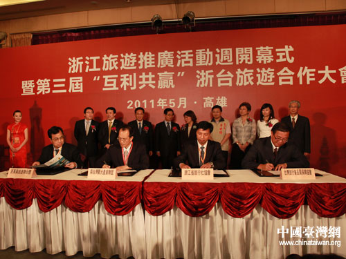 會(huì)上,浙江省旅游協(xié)會(huì)與臺(tái)灣觀光協(xié)會(huì)簽訂進(jìn)一步加強(qiáng)旅游交流、互送客源的合作意向書,浙江省旅游集團(tuán)與臺(tái)灣中華航空公司簽訂戰(zhàn)略合作框架協(xié)議,浙江省旅行社協(xié)會(huì)與臺(tái)灣旅行業(yè)品質(zhì)保障協(xié)會(huì)簽訂推進(jìn)兩地旅游品質(zhì)提升合作協(xié)議,活力浙東旅游聯(lián)合體與南臺(tái)灣高高屏觀光聯(lián)盟簽訂區(qū)域旅游合作協(xié)議。