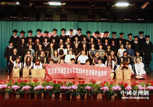中國(guó)臺(tái)灣網(wǎng)6月27日北京消息 6月24日,北京市東城區(qū)臺(tái)辦來(lái)到北京第五十五中學(xué),參加學(xué)校為初高中共19名臺(tái)灣籍同學(xué)舉行的畢業(yè)儀式,并為同學(xué)們準(zhǔn)備了畢業(yè)禮物。