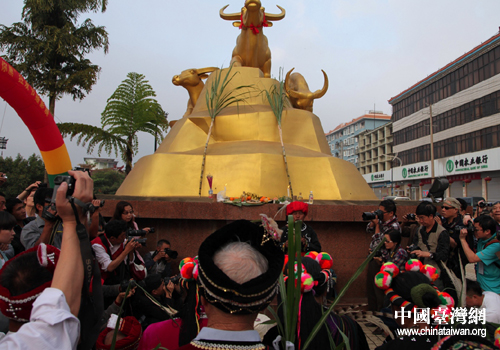 兩岸三地記者聚集“祭牛魂”儀式。(云南省臺(tái)辦 蘇輝 攝)