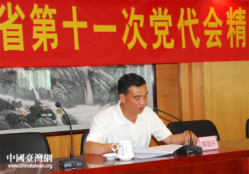 中國(guó)臺(tái)灣網(wǎng)5月17日廣州消息 日前,廣東省臺(tái)辦召開全體干部職工大會(huì),傳達(dá)學(xué)習(xí)省第十一次黨代會(huì)和省委十一屆一次全會(huì)精神,廣東省委委員、省臺(tái)辦主任陳國(guó)興主持會(huì)議并傳達(dá)精神。