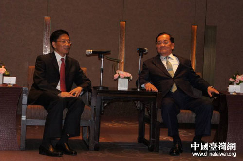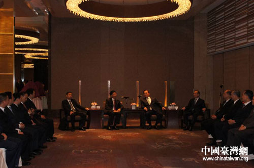 21日晚鐘勉一行在臺北會見中國國民黨榮譽主席連戰(zhàn)、中國國民黨副主席林豐正以及臺灣政界、工商界知名人士。 圖片來源:四川省臺辦