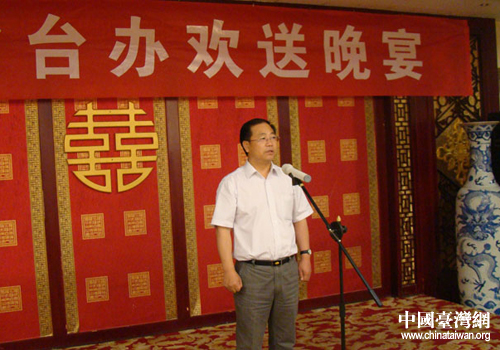 甘肅省臺(tái)辦主任趙少智在歡送晚宴上致辭。(圖片來源:甘肅省臺(tái)辦)