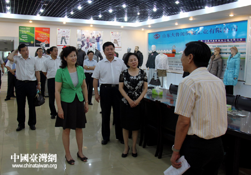 中國臺灣網7月2日濟南消息  日前,山東省臺辦主任張雪燕到濟南市濟陽縣調研對臺工作和臺資企業發展情況,先后察看了濟南大自然化學公司、統一集團、旺旺集團、大魯閣織染工業公司、界龍科技公司,并深入企業生產車間、研發中心、物流配送中心,實地調研企業生產和技術研發等情況。
