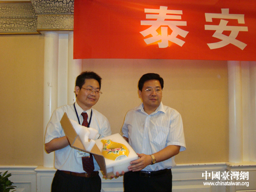 雙方互贈禮品。(圖片來源:泰安市臺辦)