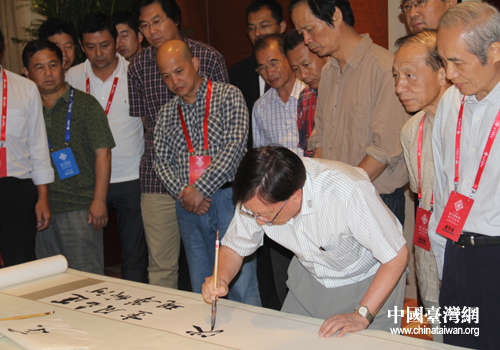 中國臺灣網9月19日棗莊消息 日前,臺灣中華文化總會會長劉兆玄蒞臨棗莊出席第三屆兩岸漢字藝術節期間,為棗莊海峽兩岸交流基地題詞:運河名城,風華重現;浴血抗寸土,英烈震千秋。(中國臺灣網棗莊市臺辦通訊員 項允剛)