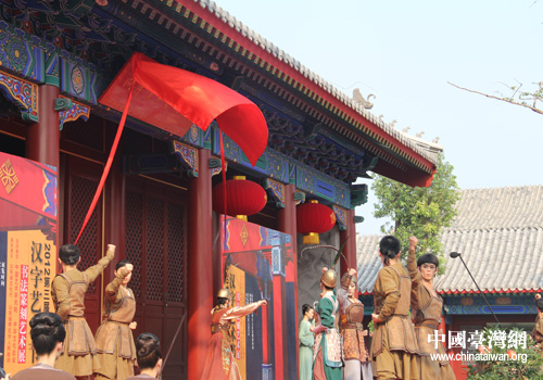 中國臺灣網(wǎng)9月20日棗莊消息 近日,第三屆兩岸漢字藝術節(jié)在山東省棗莊市舉行,臺灣漢唐樂府一行70余人前來助興表演,給兩岸游客上演了一場穿越時空的“藝術盛宴”。置身其中,仿佛時光倒轉(zhuǎn)。表演將觀眾從嘈雜的塵世中帶進了遙遠的漢唐時代,讓觀眾與漢唐壁畫中的仕女們進行了一次清新地交流。