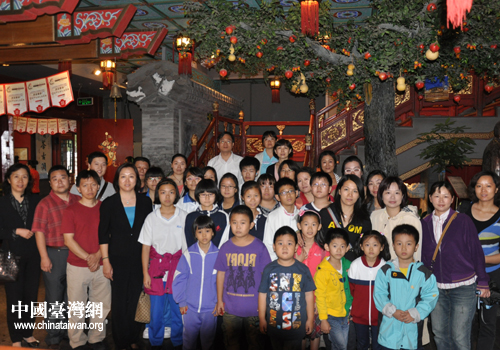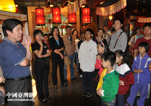 慰問活動在老舍茶館舉行,參加活動的臺籍學生在老師和家長的陪同下,興高采烈的來到老舍茶館,在茶館辦公室主任安澤京的陪同下,進行了參觀,了解了茶館從無到有,從小到大,從簡單的茶館到以茶會友,成為當前聯系世界各地文化,特別是兩岸傳統文化重要紐帶的發(fā)展歷程。