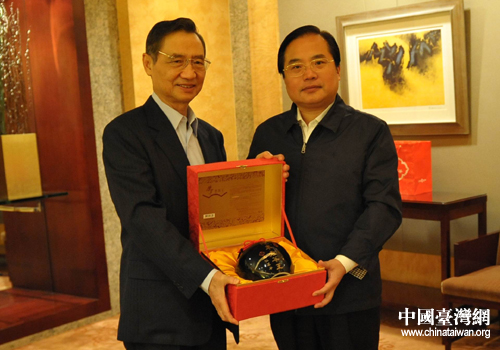 雙發(fā)互贈(zèng)禮物。(圖片來源:青島市臺(tái)辦)