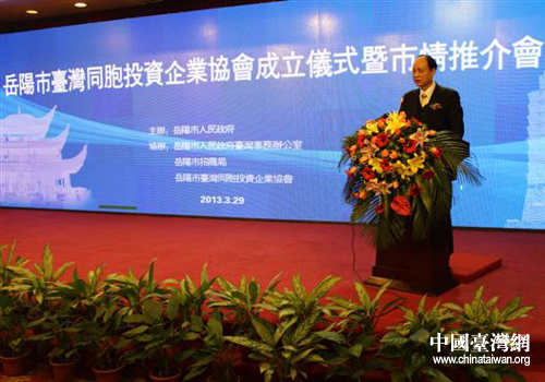 大會由市人民政府副市長宋愛華主持,市委副書記、市長盛榮華致辭并作市情推介。大會以“以會搭臺,廣交朋友,促進市臺協會的橫向交流與合作;以商招商,推介岳陽,推動岳臺經貿合作的深化與提速”為宗旨,以“營造臺商優越舒適置業環境,夯實岳臺互利雙贏發展平臺”為主題。