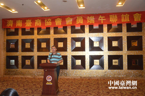 2013駐濟(jì)臺商端午聯(lián)誼會舉行,濟(jì)南市臺協(xié)會會長王金銷致辭。(圖片來源:濟(jì)南市臺辦)