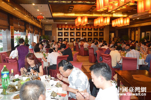 中國臺灣網(wǎng)6月13日濟(jì)南消息 “...五色新絲纏角粽,金盤送,生綃畫扇盤雙鳳...”歐陽修一首《漁家傲》將端午節(jié)的情致淋淋盡致、活色生香地展現(xiàn)在我們眼前。6月8日,2013駐濟(jì)臺商端午節(jié)聯(lián)誼會在濟(jì)南舉行,濟(jì)南市臺辦副主任李玉、市臺協(xié)會會長王金銷及政府相關(guān)部門負(fù)責(zé)人和駐濟(jì)臺商百余人歡聚一堂,共度傳統(tǒng)佳節(jié)端午節(jié)。活動由市臺協(xié)會副秘書長陳遵義主持。