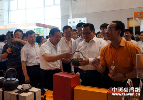 威海市委書記、市人大常委會主任孫述濤,威海市政府副市長田治穎在臺灣兩岸情經(jīng)貿(mào)交流協(xié)會會長王培旺、威海市臺辦主任于連波等陪同下來到設(shè)在威海國際展覽中心B館“臺灣館”,看望參展臺商。“臺灣館”參展范圍涉及食品及文化領(lǐng)域的精美商品,以零售和尋求代理、加盟為主。孫述濤一行饒有興趣地參觀了臺灣館,鑒賞了茶壺、茶文化展示,品嘗了臺灣小吃,并與參會臺商親切交談,對他們來威參展表示歡迎和感謝。