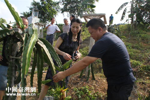 查看火龍果種植情況。(圖片來源:羅甸縣臺辦)