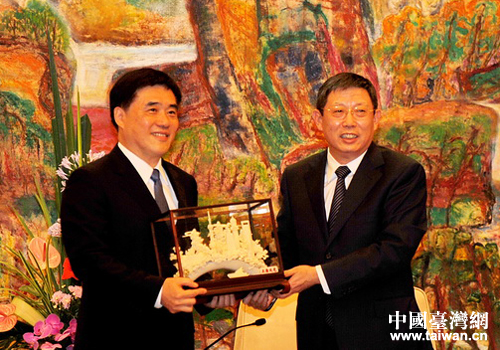 上海市長楊雄會見臺北市長郝龍斌一行。(上海市臺辦 常志康 攝)