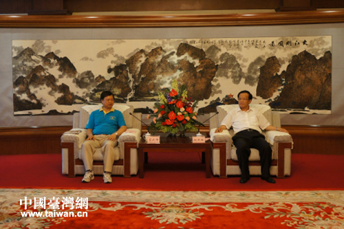 中國臺灣網7月12日威海消息 7月11日下午,威海市委副書記趙熙殿在威海會見了臺灣一國兩制研究協會理事長、臺灣嘉農農業發展基金會總裁蔡武璋一行。