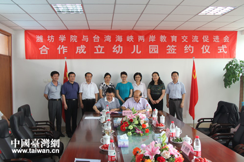 中國臺灣網(wǎng)8月27日濰坊消息 8月27日,濰坊學院與臺灣海峽兩岸教育交流促進會就合作成立幼兒園正式簽約。臺灣海峽兩岸教育交流促進會將在濰坊學院濰坊幼教特教師范學校校區(qū)投資建設幼兒園項目,該幼兒園將采用美國“芝麻街”教育模式和臺灣先進的教育理念,配套以符合幼兒智商、情商、品德、體能、藝術(shù)素養(yǎng)全面發(fā)展的高端設施。(中國臺灣網(wǎng)、濰坊市臺辦聯(lián)合報道)