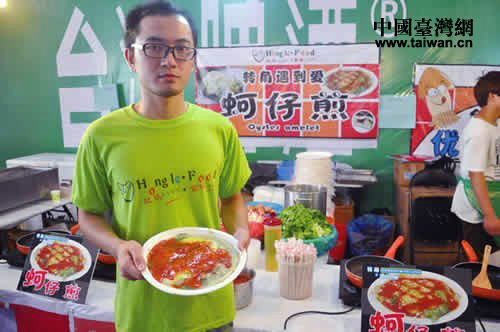 啤酒節上的人氣臺灣小吃——蚵仔煎。(圖片來源:青島臺辦)