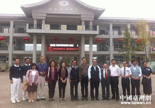 臺灣行政學會訪問團在什邡洛水慈濟中學合影。(圖片來源:什邡市臺辦)