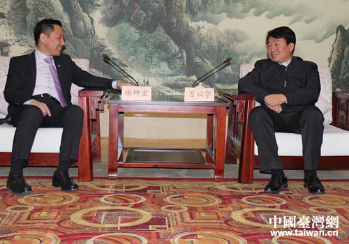 中國(guó)臺(tái)灣網(wǎng)12月11日淮南消息 12月10日,中國(guó)國(guó)民黨中常委謝坤宏一行來(lái)淮南市交流考察,淮南市委副書記萬(wàn)以學(xué)在洞山賓館會(huì)客廳會(huì)見(jiàn)了謝坤宏一行。