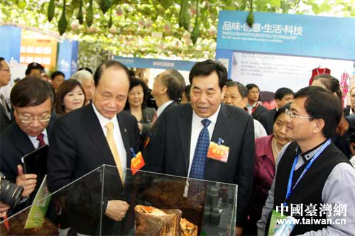 中國臺灣網4月21日壽光消息 春暖花開,菜果飄香。4月20日,以“綠色、科技、未來”為主題的第十五屆中國(壽光)國際蔬菜科技博覽會在山東省壽光市拉開帷幕,再度向世人奉獻一道道氣勢恢宏的三農盛宴。20日上午,臺灣海基會董事長林中森、副董事長馬紹章率;鶗幕瘏⒃L團出席第十五屆中國(壽光)國際蔬菜科技博覽會開幕式,并參觀了第三屆臺灣農產品精品展示展銷會,與部分在山東投資的臺商代表進行了座談。