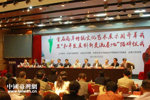 中國臺灣網(wǎng)5月8日北京消息 日前,首屆“大江論壇”系列活動之一的兩岸傳統(tǒng)文化藝術(shù)交流展示周活動在北京臺灣會館開幕。本次活動由臺盟中央聯(lián)絡(luò)部、臺盟北京市委、中國文學(xué)藝術(shù)基金會中國陶瓷藝術(shù)基金以及臺盟江西支部共同主辦。