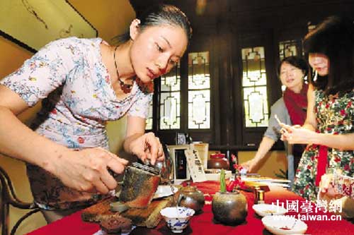 中國臺灣網5月12日杭州消息 喝茶,是一種大眾生活方式,而在浙江連橫紀念館話茶,則更有一番兩岸文化交流的情趣。日前,以“不語茶,可會心”為主題瑪瑙雅集之茶養生活動在瑪瑙寺連橫紀念館舉行。瑪瑙雅集作為2014第十屆中國(杭州)國際名茶博覽會重要活動之一,將新穎獨特的臺灣茶文化靜靜融入每一位茶文化愛好者的生活,以精致、生活、創意的視角促進兩岸茶文化交流。