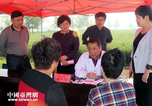 中國臺灣網4月29日合肥訊 日前,安徽省糧食局、省臺盟、省臺聯在蒙城縣共同舉辦“送醫下鄉”活動。4月25日下午、26日上午,義診活動先后在許疃鎮土橋村、莊周辦事處九里橋村展開。省糧食局巡視員劉惠,省臺盟主委、省臺聯會長陳清海,省臺聯副會長仲宏斌分別到現場參加活動。