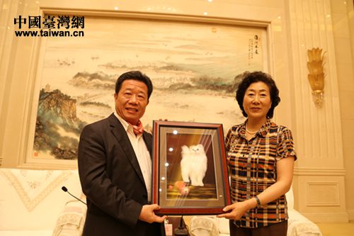 花建慧向王正典贈禮品。(圖片來源:安徽省臺辦)