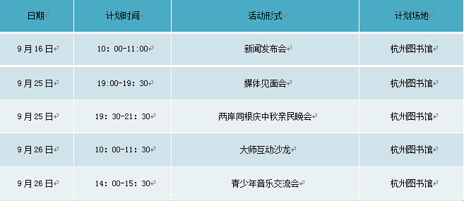 注:9月16日-10月8日在杭州圖書館每天進行相關主題音樂展覽