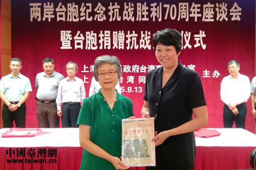 中國臺灣網(wǎng)9月24日上海訊 上海市臺灣同胞聯(lián)誼會邀請兩岸臺胞代表于8月13日在上海舉行座談會,紀(jì)念抗戰(zhàn)勝利70周年。