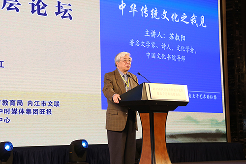 著名文學家、詩人蘇叔陽發表演講。