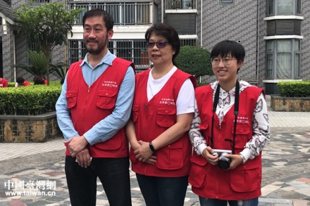 都江堰愛心家園臺灣志工劉克璜、彭亞南夫婦和大學生志愿者。(中國臺灣網 趙苗青 攝)