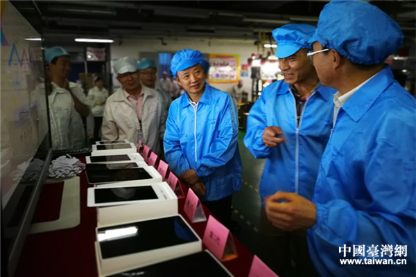 四川省臺辦主任周敏謙深入富士康(成都)公司生產(chǎn)車間查看生產(chǎn)情況。(圖片來源:四川省臺辦)