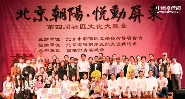 中國臺灣網6月26日北京訊 第四屆“北京朝陽‘悅動高雄·悅動屏東’社區文化大舞臺”在臺灣舉行,繼續著兩岸同胞對中華民族傳統文化的“零距離”交流。