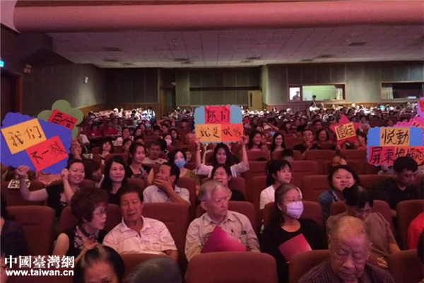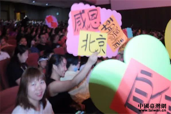 演出現場有十幾位觀眾舉著“感恩北京朝陽情”、“悅動屏東媳婦心”等自制看板,喝采叫好聲持續不斷,她們對記者說:“你們都是娘家人。”她們從大陸嫁到當地,有的人已經在臺灣生活20多年,聽說大陸親人來屏東演出,讓她們感到特別親切,自發組織起來給大陸親人捧場。