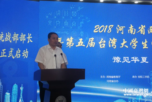 中共河南省委常委、統戰部部長孫守剛宣布 “2018河南省兩岸青年交流月暨第五屆臺灣大學生中原文化之旅”正式啟動。(河南省臺辦供圖)