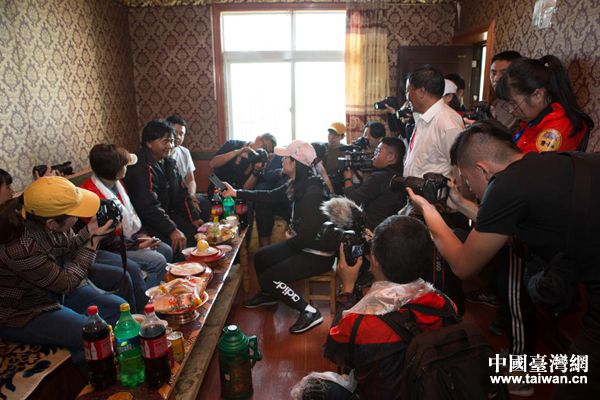 在藏族同胞家里采訪拍攝。(圖片來源:四川省臺辦)