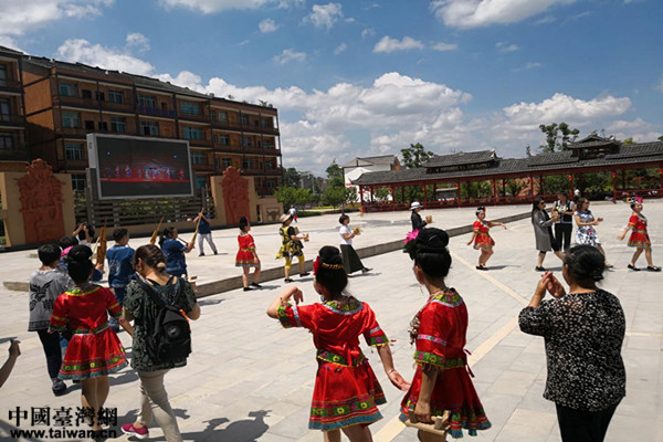 在花山苗族鄉,參訪團一行先后到花山苗族鄉同心展覽館、苗族風情園、苗鄉廣場、苗族圖騰廣場和花山民族中學等地參觀考察,對花山苗族鄉的苗族文化傳承與發展表示充分肯定。考察期間,苗鄉姑娘、小伙身著盛裝,斟滿美酒、載歌載舞對遠道而來的客人表示熱烈的歡迎。臺灣同胞也加入到熱情洋溢的歌舞中,喝美酒、學苗語、跳苗舞,兩地同胞敞開心扉真情交流,達到了思想交融、靈魂碰撞。