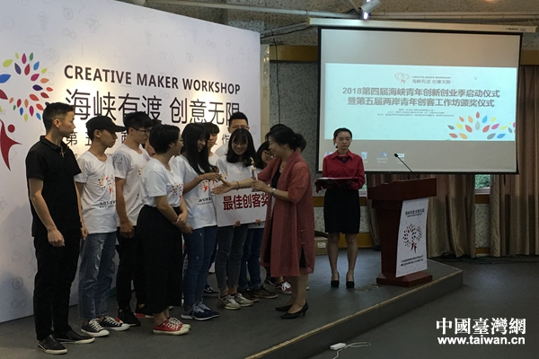 在啟動儀式上,作為本屆創新創業季首個子活動的兩岸青年創客工作坊頒獎活動同時舉行,來自海峽兩岸125名青年分為10組,通過頭腦風暴、創意設計、模型制作、產品商業策劃書編制、ppt展示等,合作設計了10件創意作品,備受評委與當地業者好評,并評出最佳潛質獎、最佳創新獎、最佳創意獎以及最佳創客獎等獎項各2個。經過與企業協商,最終有5支團隊的創客作品與溫州星火科技有限公司、溫州創意設計中心、溫州先臨左岸工業設計有限公司、溫州斯帕克工業設計有限公司等5家企業簽訂了作品專有技術轉讓協議,F場組織頒獎活動上,他們紛紛上臺領獎并敘說獲獎感言。他們借助創新創業季這一平臺,從素不相識到合作創造作品,他們當中的一些創意作品將進入市場化運作,這展現了兩岸青年在一起1+1大于2的積極效應。