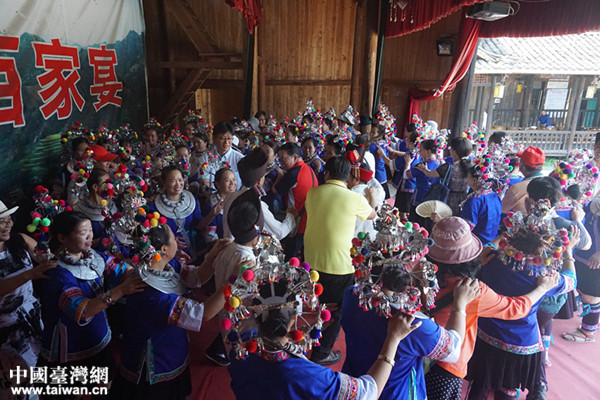 參訪團與侗族人民一起跳舞。(圖片來源:柳州市臺辦)