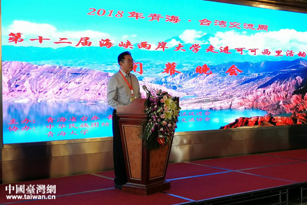 協(xié)辦單位中華民族團結(jié)協(xié)會榮譽理事長夏瀛洲致辭。(圖片來源:青海省臺辦)