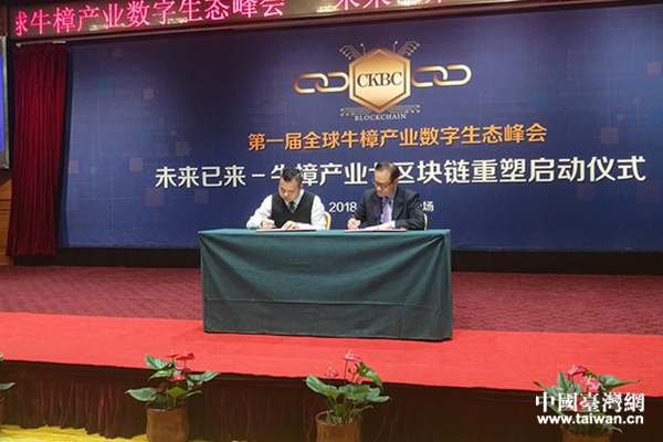 全球牛樟芝區(qū)塊鏈產(chǎn)業(yè)聯(lián)盟與福建老深山農(nóng)業(yè)科技有限公司簽訂第一筆價值1億元的牛樟芝產(chǎn)品訂單。(中國臺灣網(wǎng) 郜利敏 攝)