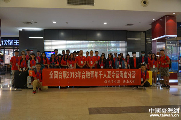 海南大學生營員在機場迎接臺灣營員。(圖片來源:海南臺辦)
