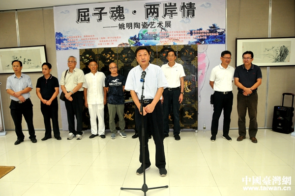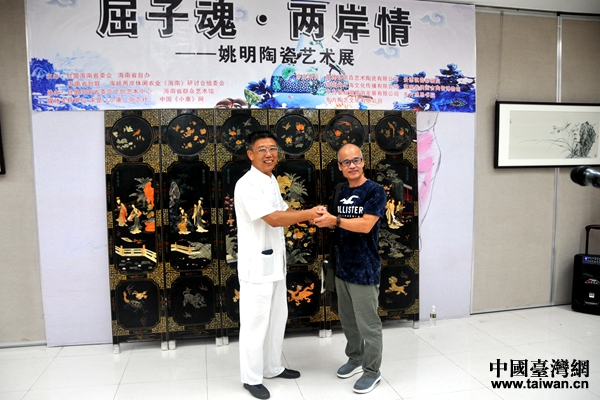 中國臺灣網8月28日海口訊 由臺盟海南省委會,海南省臺辦、海南省臺聯聯合舉辦的“屈子魂·兩岸情——姚明陶瓷展”,8月27日下午在海南省群眾藝術館舉行開幕儀式。