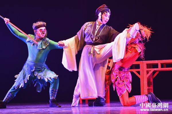 中國臺灣網9月7日南寧訊 近期,廣西南寧市民族文化藝術研究院(以下稱南寧市藝研院)演職人員一行15人首次攜南派傳統粵劇《目連救母》赴臺,與臺灣戲劇學院的12名同學合作,在南投縣演藝廳、新北市力行福德宮戶外露天舞臺演出,共同演繹中華傳統“百善孝為先”的感人故事,受到當地民眾的熱捧。