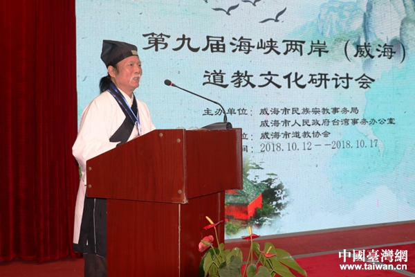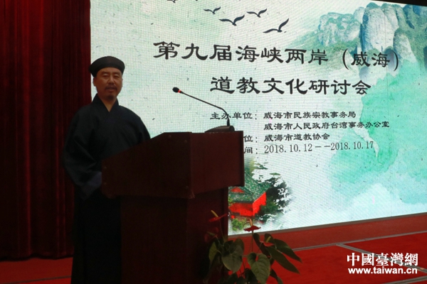 中國臺灣網10月25日威海訊 10月13日,第九屆海峽兩岸(威海)道教文化研討會在山東威海成功舉行。威海市委常委、組織部部長劉運出席研討會開幕式并致辭。山東省臺辦交往交流處副處長魏章柱,威海市臺辦主任李英春、副主任劉新亭,市民族宗教局局長李忠楠、副局長高運玲,全國道教協會副會長、山東省道教協會會長張誠達,威海市道教協會會長孫誠修,臺灣正宗全真道教會理事長巫平仁、臺灣省道教會理事長張榮珍等出席開幕式,海峽兩岸道教人士共100余人參加。李英春主持開幕式,張誠達、巫平仁分別代表兩岸道教人士致辭。