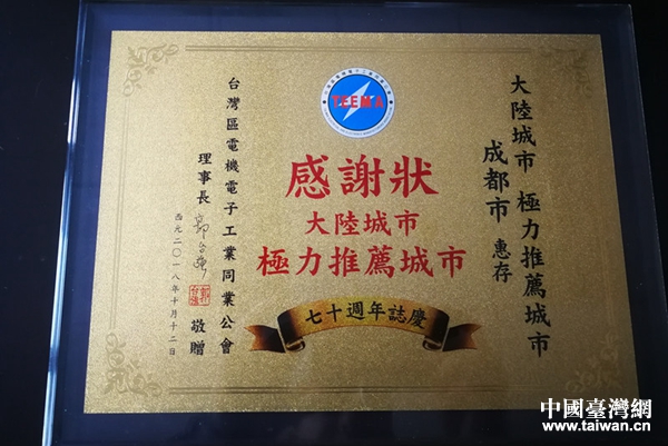 成都連續(xù)16年獲評臺商投資“極力推薦城市”。(圖片來源:成都市臺辦)